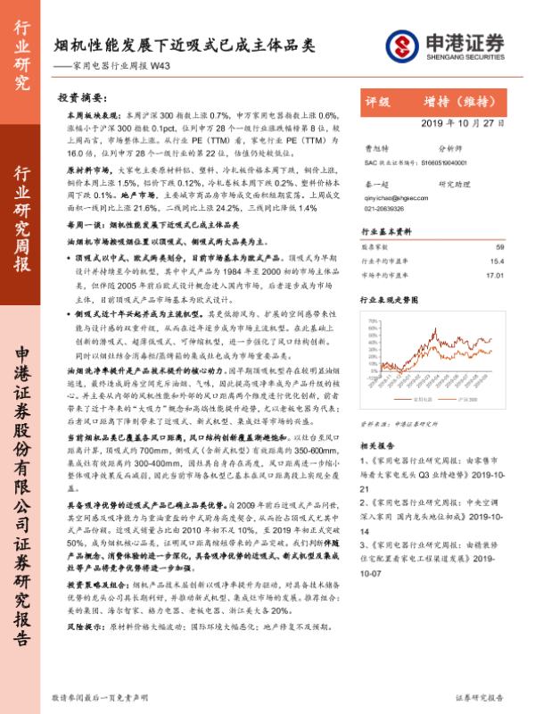 【申港证券】【20191027】家用电器行业周报W43:烟机性能发展下近吸式已成主体品类-18页