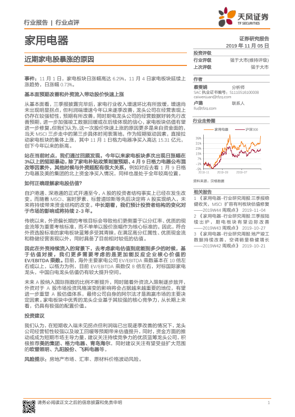 【天风证券】【20191105】家用电器行业点评:近期家电股暴涨的原因-7页