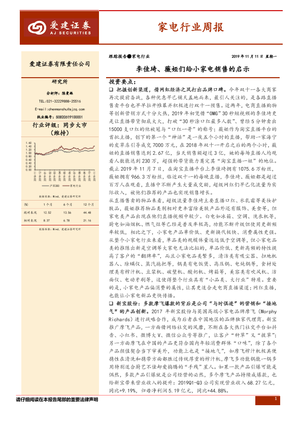 【爱建证券】【20191111】家电行业周报:李佳琦、薇娅们给小家电销售的启示-12页
