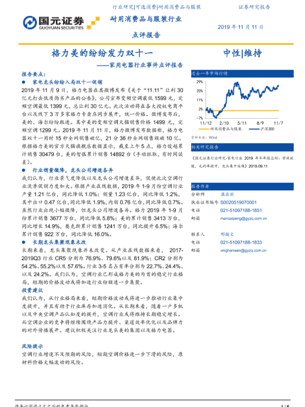 【国元证券】【20191111】格力美的纷纷发力双十一——家用电器行业事件点评报告-6页