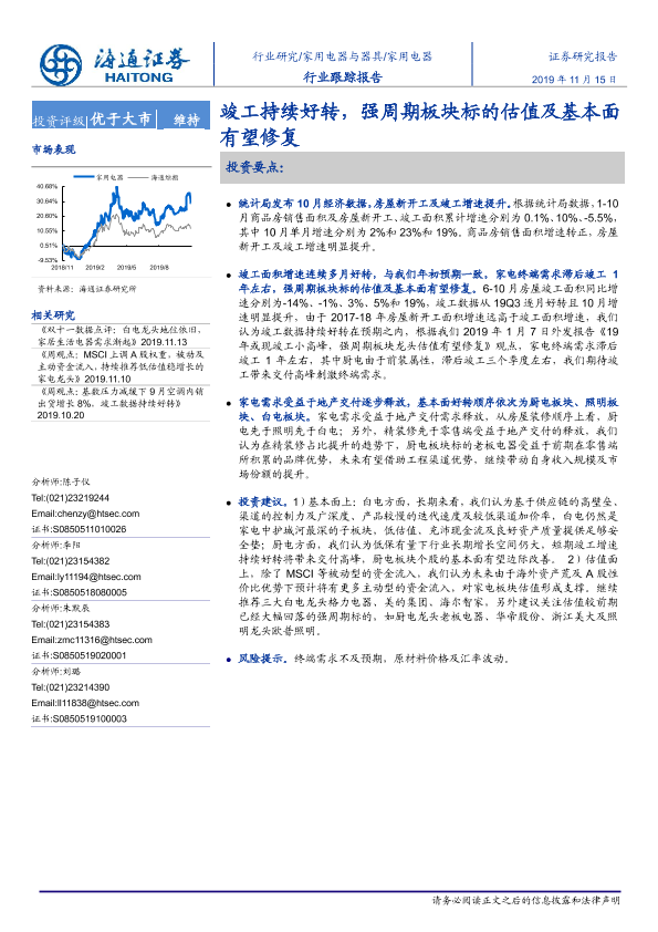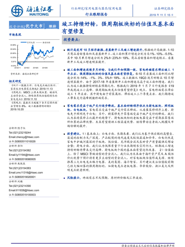 【海通证券】【20191115】20191115-海通证券-家用电器行业跟踪报告:竣工持续好转,强周期板块标的估值及基本面有望修复-2页