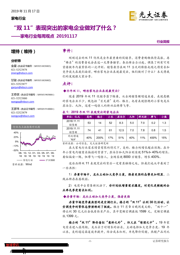 【光大证券】【20191117】20191117-光大证券-家电行业每周观点:“双11”表现突出的家电企业做对了什么?-8页