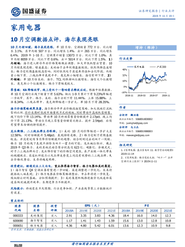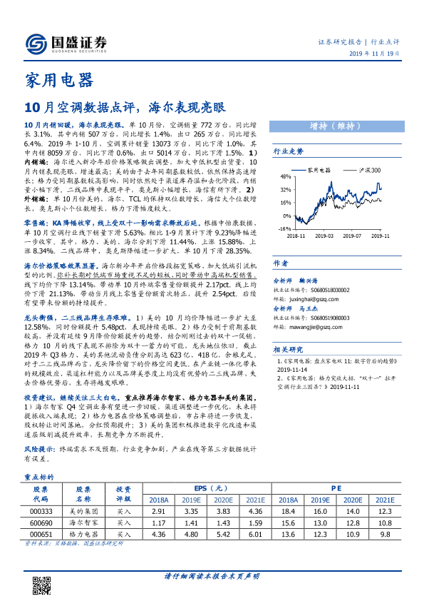 【国盛证券】【20191119】20191119-国盛证券-家用电器行业点评:10月空调数据点评,海尔表现亮眼-9页