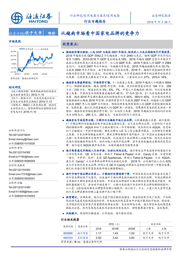【海通证券】【20191126】家用电器行业专题报告:从越南市场看中国家电品牌的竞争力-18页