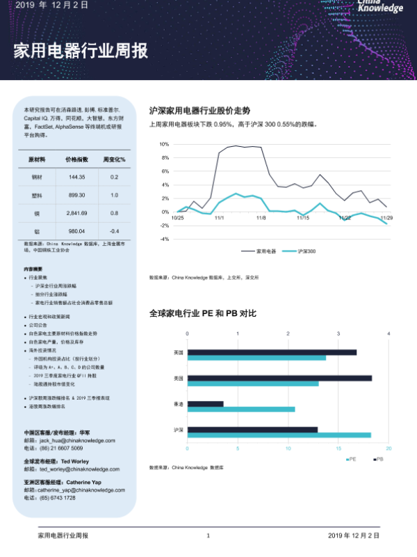 【China Knowledge】【20191202】家用电器行业周报-13页