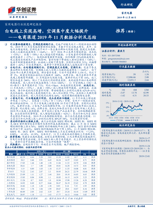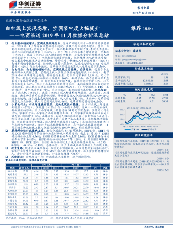 【华创证券】【20191208】家用电器行业深度研究报告:电商渠道2019年11月数据分析及总结-白电线上实现高增,空调集中度大幅提升-23页