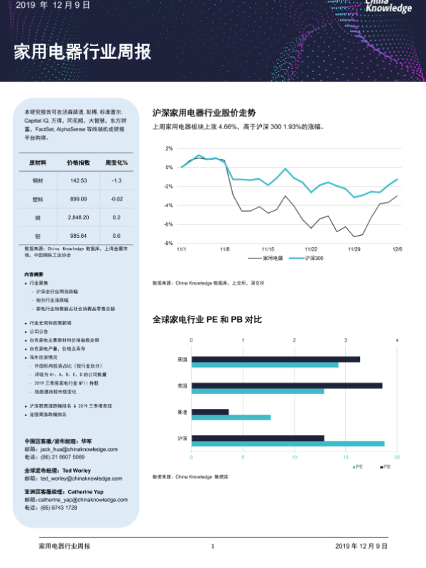 【China Knowledge】【20191209】家用电器行业周报-13页