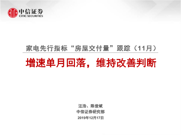 【中信证券】【20191217】家电先行指标“房屋交付量”跟踪(11月):增速单月回落,维持改善判断-10页