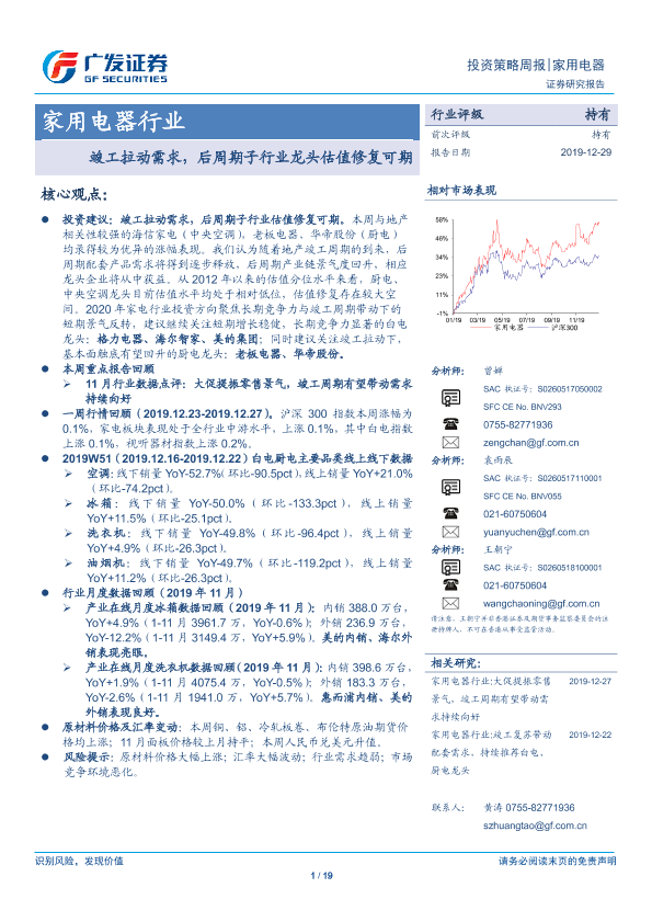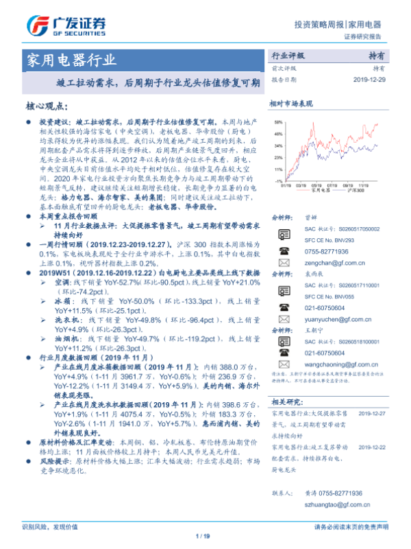【广发证券】【20191229】20191229-广发证券-家用电器行业投资策略周报:竣工拉动需求,后周期子行业龙头估值修复可期-19页