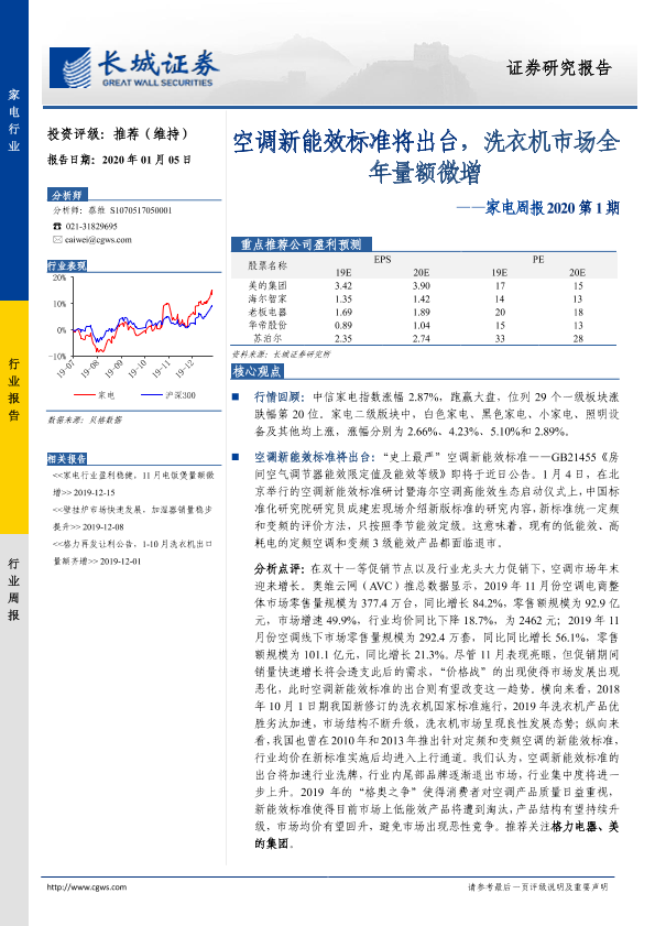 【长城证券】【20200105】家电周报2020第1期:空调新能效标准将出台,洗衣机市场全年量额微增-11页