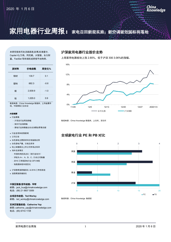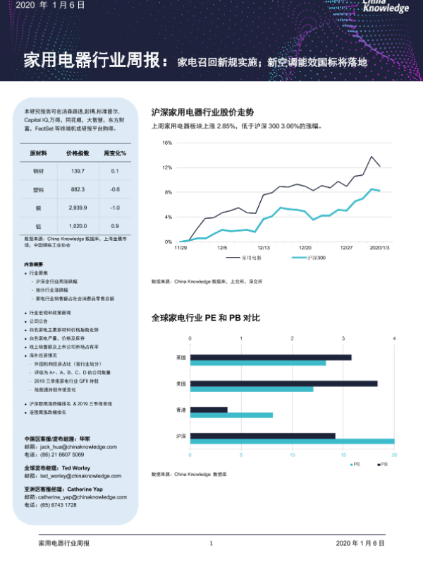 【China Knowledge】【20200106】家用电器行业周报:家电召回新规实施;新空调能效国标将落地-14页