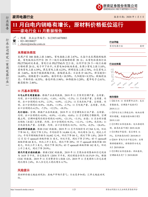 【浙商证券】【20200105】20200105-浙商证券-家电行业11月数据报告:11月白电内销略有增长,原材料价格低位运行-23页