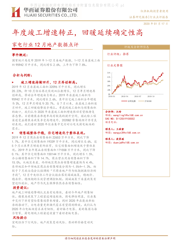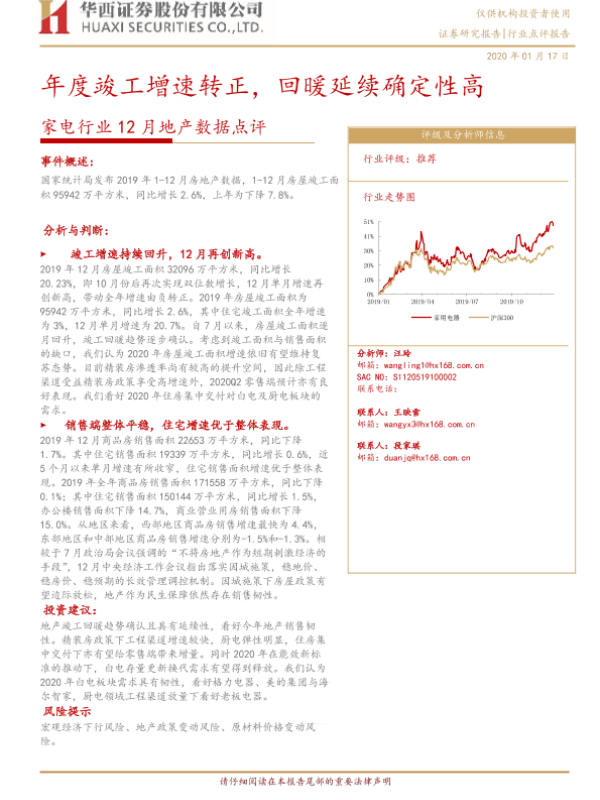 【华西证券】【20200117】家电行业12月地产数据点评:年度竣工增速转正,回暖延续确定性高-3页