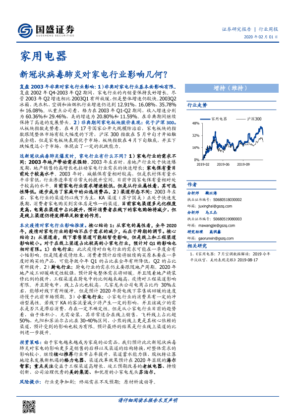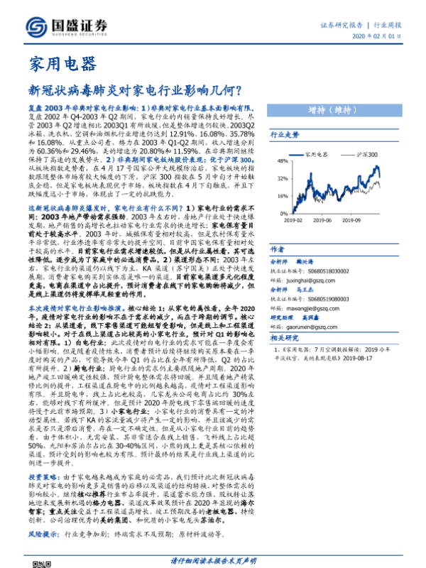 【国盛证券】【20200201】家用电器行业周报:新冠状病毒肺炎对家电行业影响几何?-14页