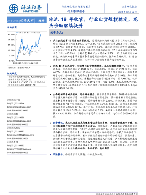 【海通证券】【20200202】冰洗19年收官,行业出货规模稳定,龙头份额继续提升-3页