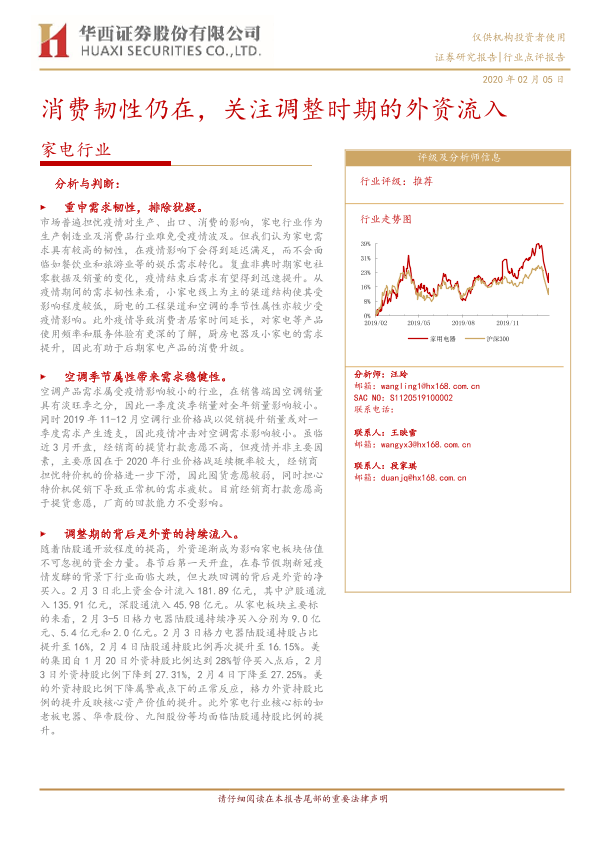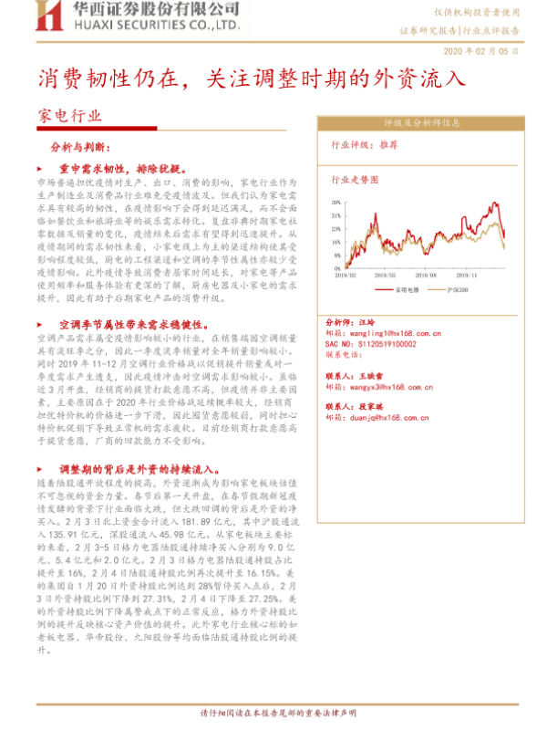 【华西证券】【20200205】家电行业:消费韧性仍在,关注调整时期的外资流入-4页