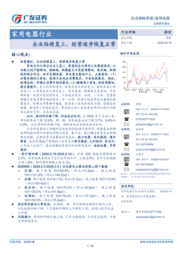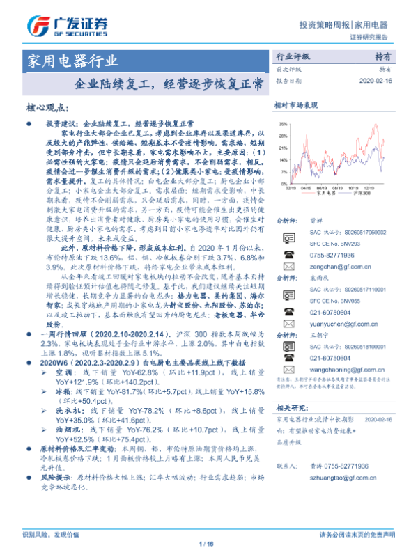 【广发证券】【20200216】家用电器行业:企业陆续复工,经营逐步恢复正常-16页