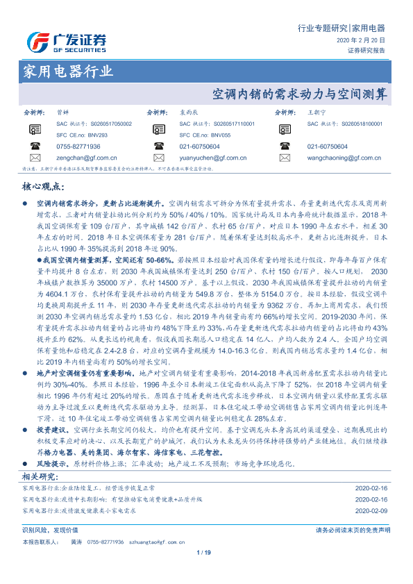 【广发证券】【20200220】家用电器行业专题研究:空调内销的需求动力与空间测算-19页