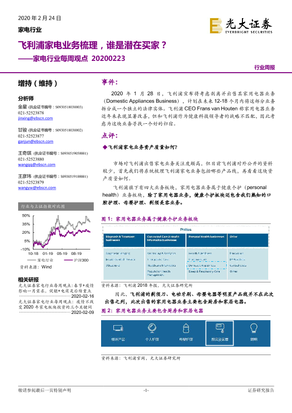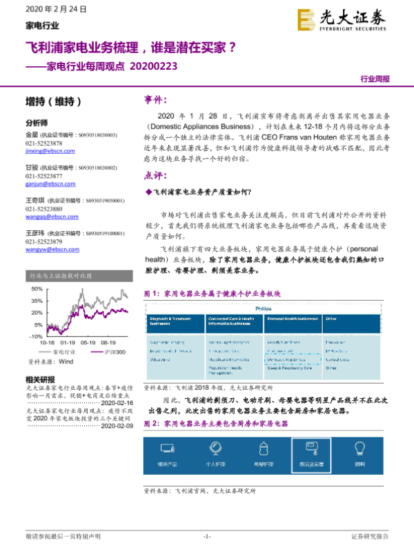 【光大证券】【20200224】20200224-光大证券-家电行业每周观点:飞利浦家电业务梳理,谁是潜在买家?-8页