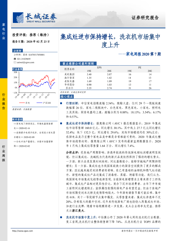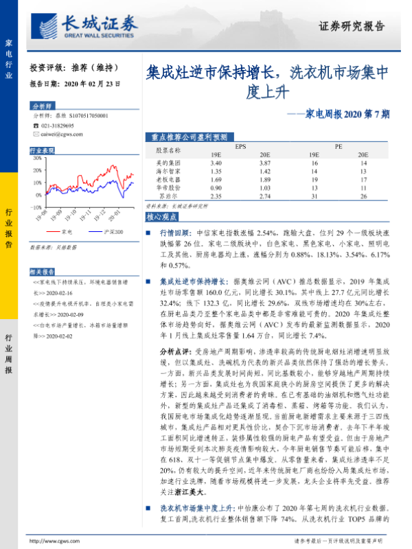 【长城证券】【20200223】家电周报2020第7期:集成灶逆市保持增长,洗衣机市场集中度上升-11页