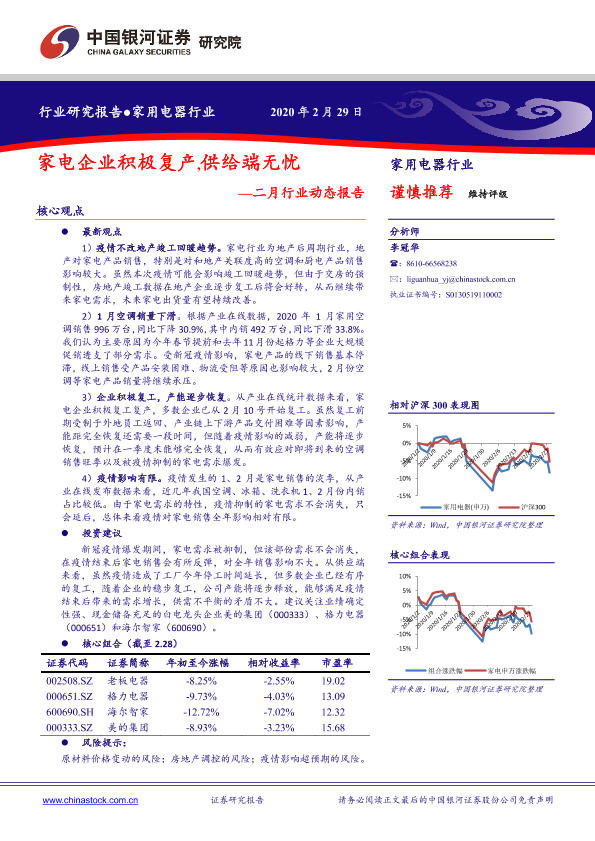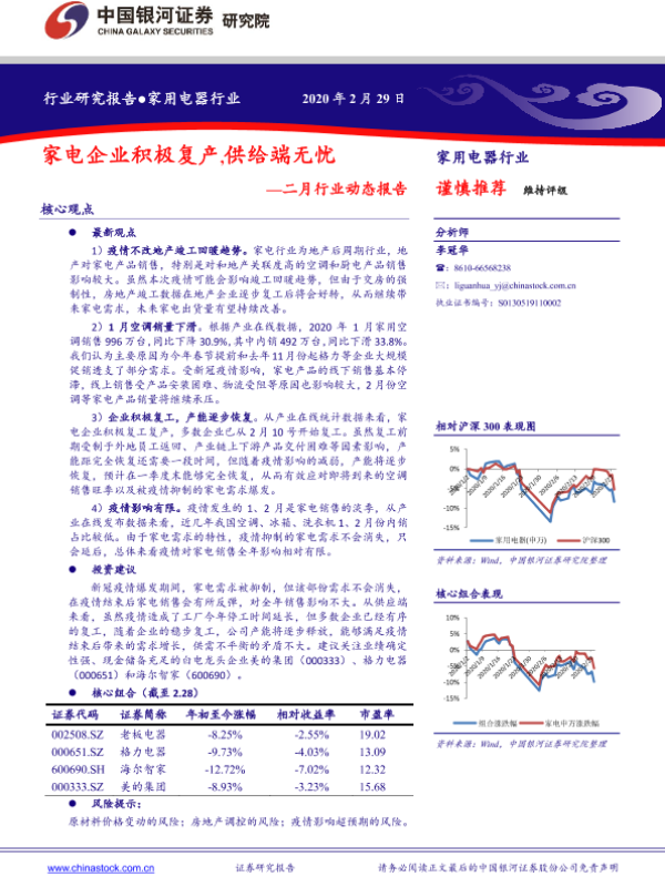 【银河证券】【20200229】家用电器行业二月行业动态报告:家电企业积极复产,供给端无忧-29页