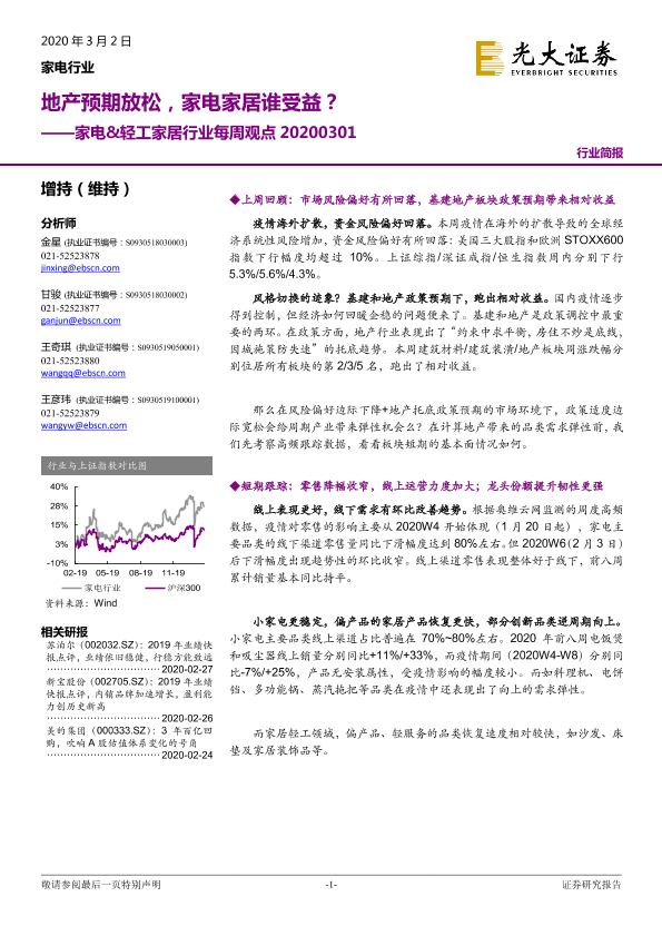 【光大证券】【20200302】家电&轻工家居行业每周观点:地产预期放松,家电家居谁受益?-11页