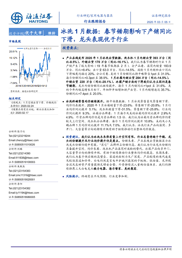 【海通证券】【20200305】20200305-海通证券-家用电器与器具行业跟踪报告:冰洗1月数据:春节错期影响下产销同比下滑,龙头表现优于行业-3页