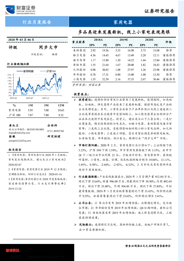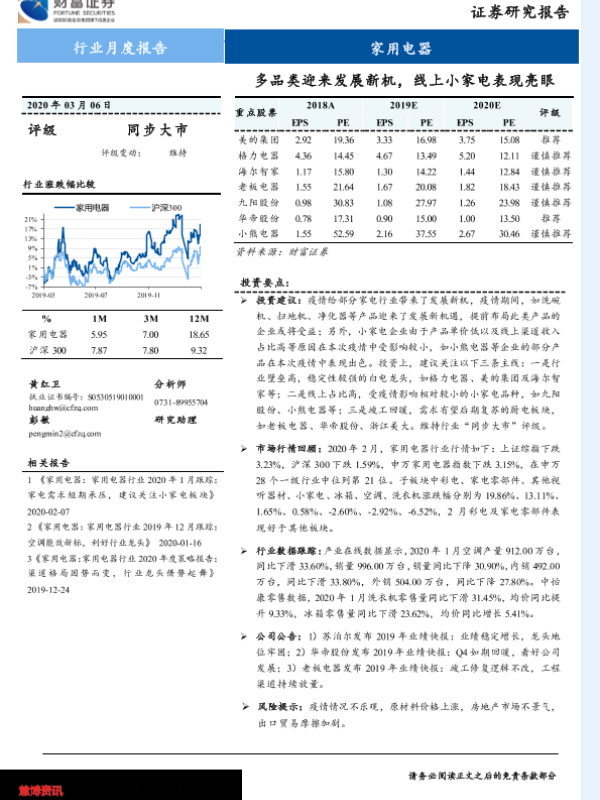 【财信证券】【20200306】家用电器行业月度报告:多品类迎来发展新机,线上小家电表现亮眼-11页