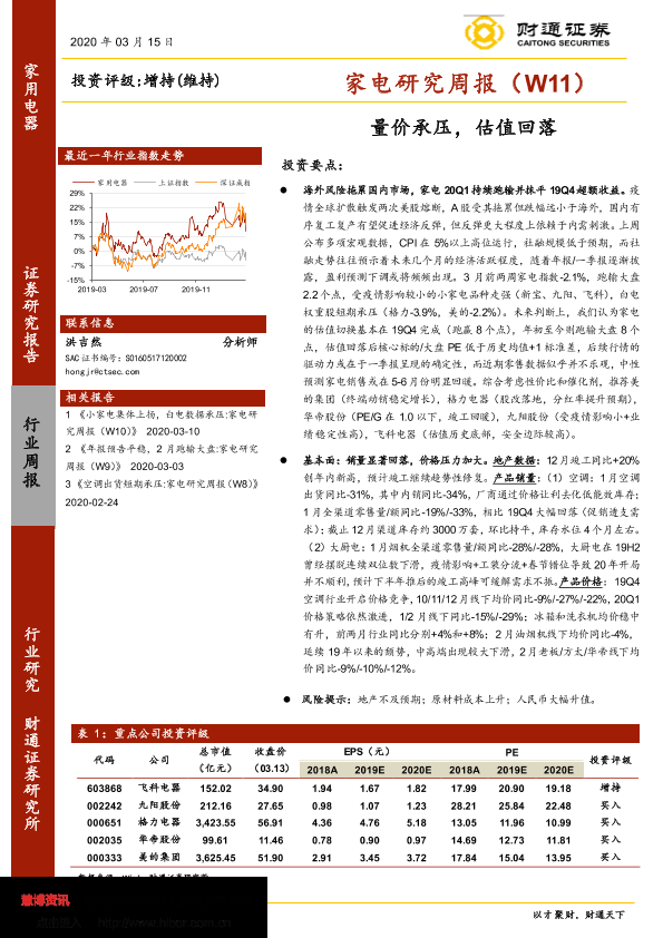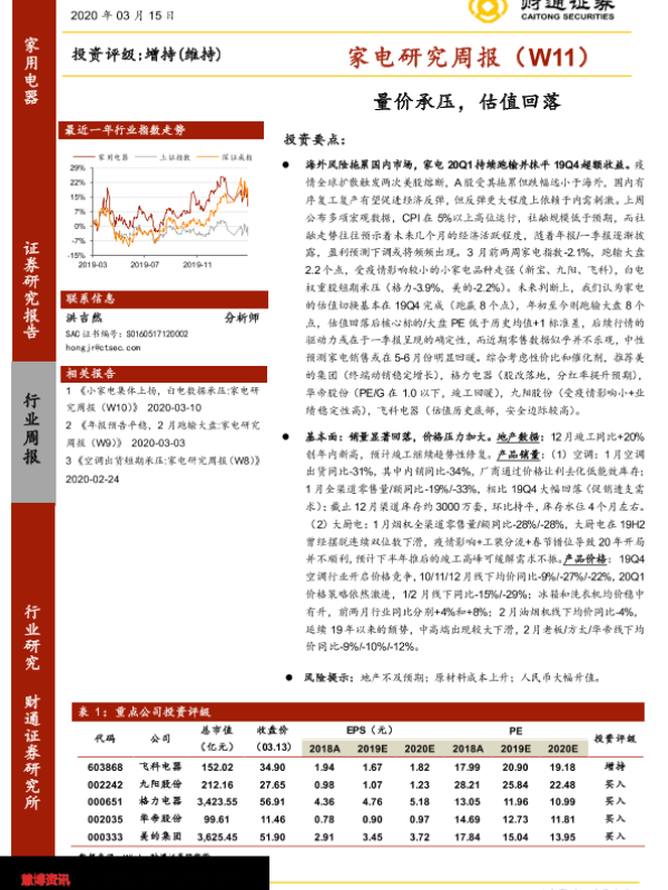 【财通证券】【20200315】家电研究周报(W11):量价承压,估值回落-22页