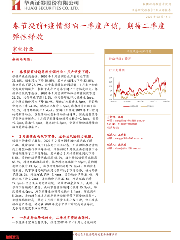 【华西证券】【20200316】家电行业:春节提前+疫情影响一季度产销,期待二季度弹性释放-4页