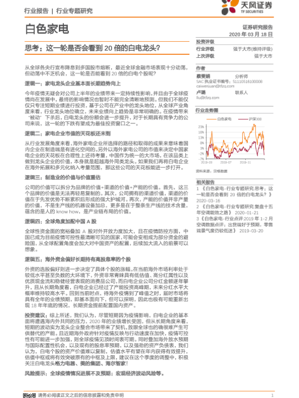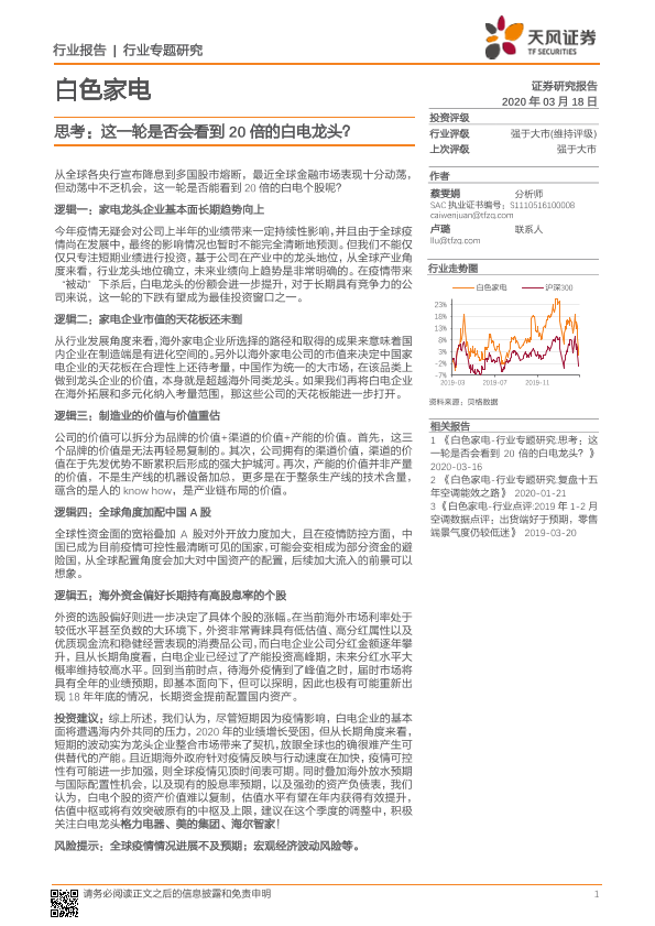 【天风证券】【20200318】20200318-天风证券-白色家电行业专题研究:思考:这一轮是否会看到20倍的白电龙头?-18页