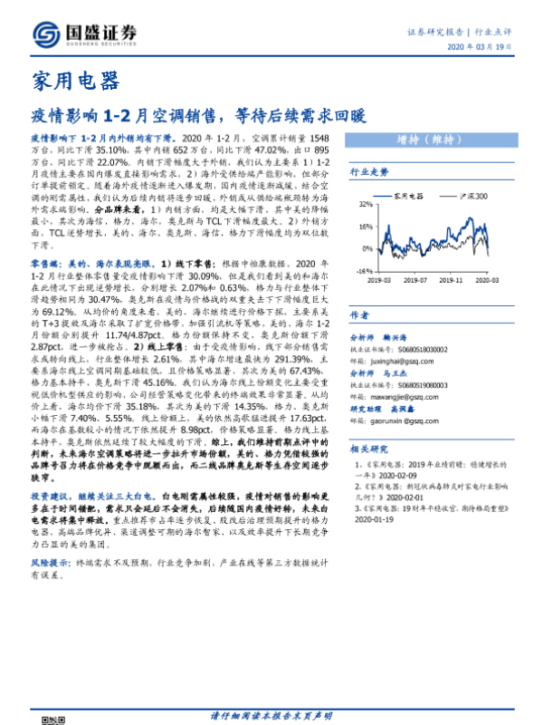 【国盛证券】【20200319】疫情影响1-2月空调销售,等待后续需求回暖-7页