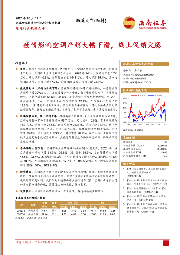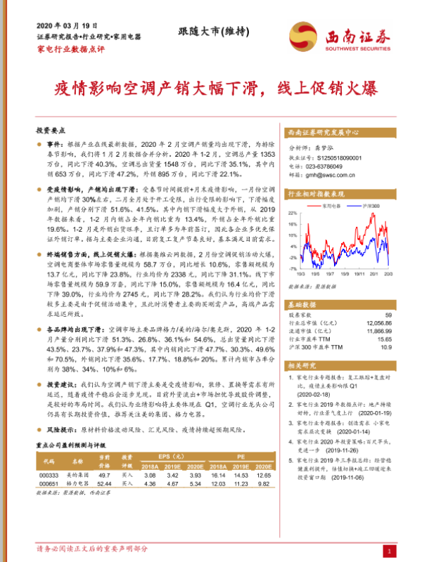【西南证券】【20200319】家电行业数据点评:疫情影响空调产销大幅下滑,线上促销火爆-5页