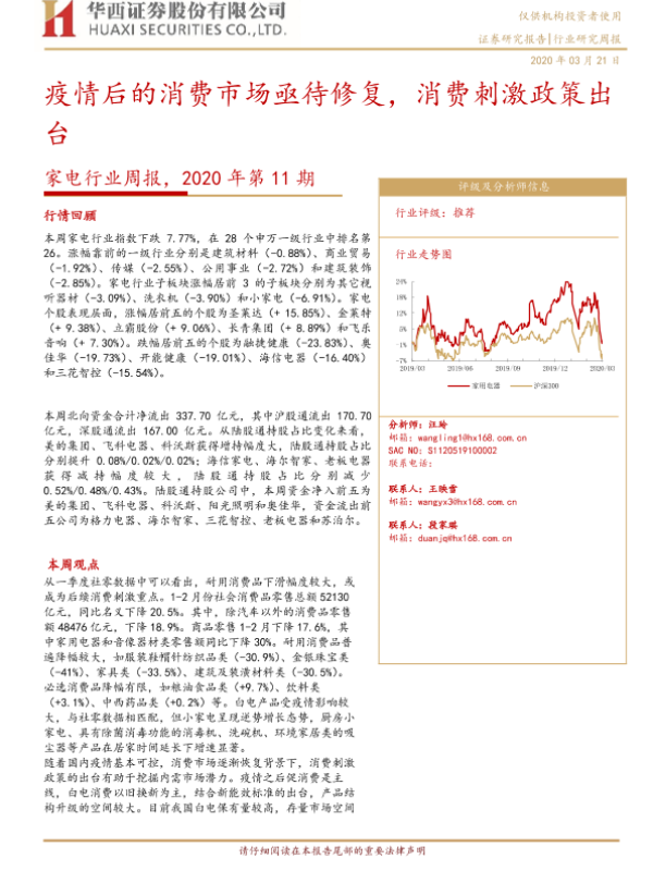家电行业 消费刺激政策 疫情后市场 白电消费 社零数据