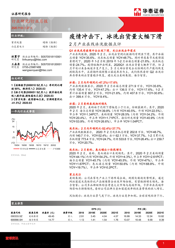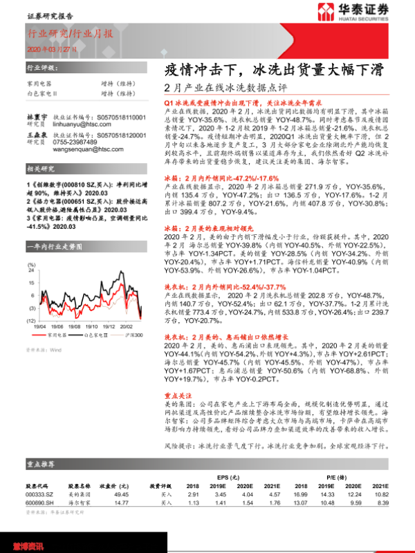 【华泰证券】【20200327】家用电器:2月产业在线冰洗数据点评-疫情冲击下,冰洗出货量大幅下滑-11页