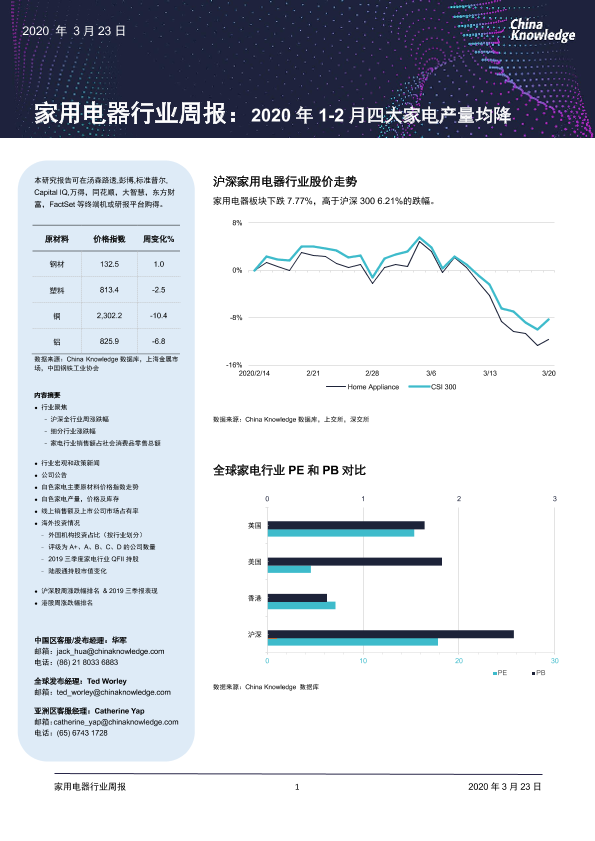 【China Knowledge】【20200323】家用电器行业周报:2020年1-2月四大家电产量均降-14页