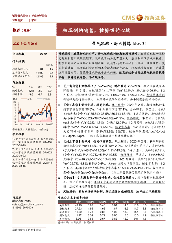 【海通证券】【20200329】景气跟踪·厨电情缘Mar.20:被压制的销售,被撩拨的心绪-5页