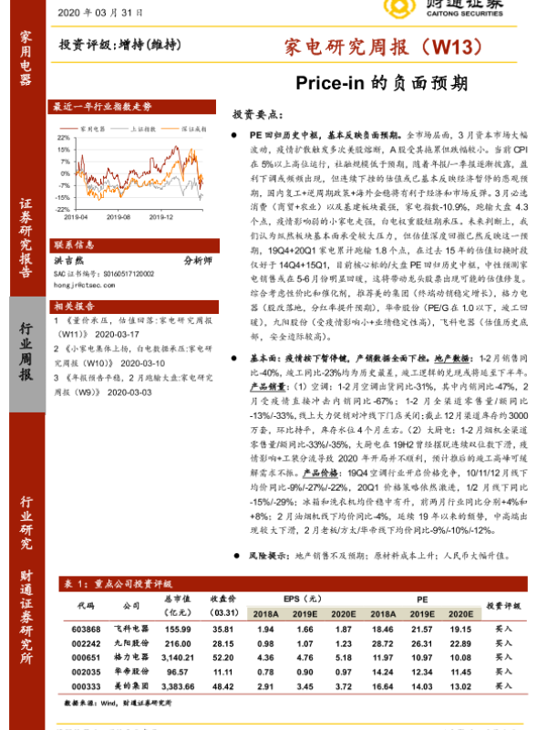 【财通证券】【20200331】20200331-财通证券-家电研究周报(W13):Price-in的负面预期-20页