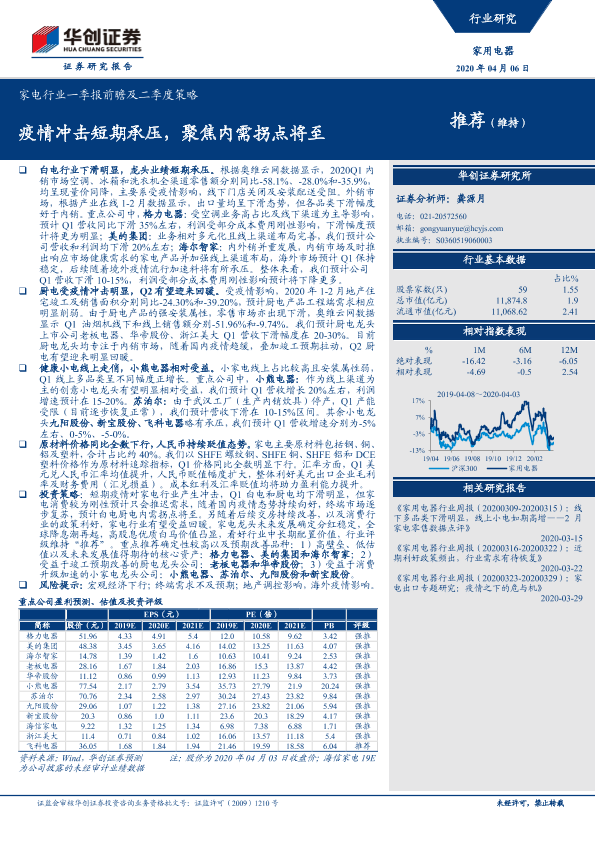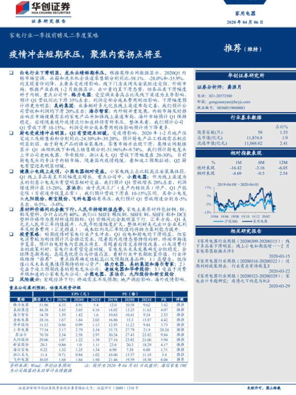 【华创证券】【20200406】家电行业一季报前瞻及二季度策略:疫情冲击短期承压,聚焦内需拐点将至-19页