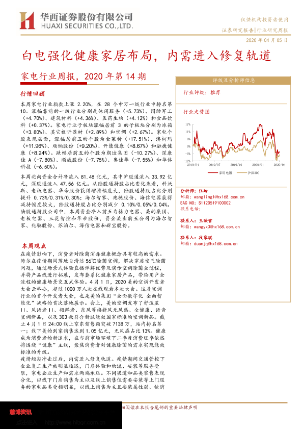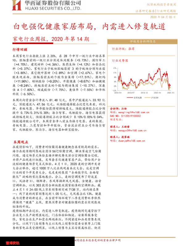 【华西证券】【20200405】2020年第14期家电行业周报:白电强化健康家居布局,内需进入修复轨道-20页