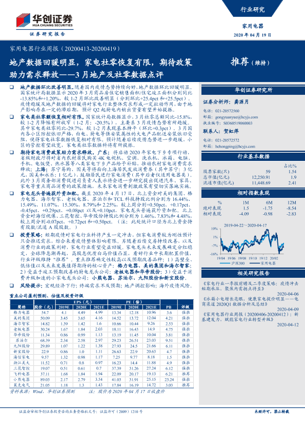 【华创证券】【20200419】家用电器行业周报-3月地产及社零数据点评:地产数据回暖明显,家电社零恢复有限,期待政策助力需求释放-13页