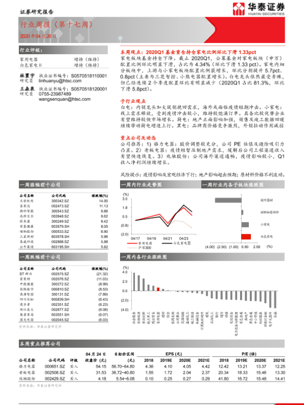 【华泰证券】【20200426】20200426-华泰证券-家用电器行业周报(第十七周)-11页