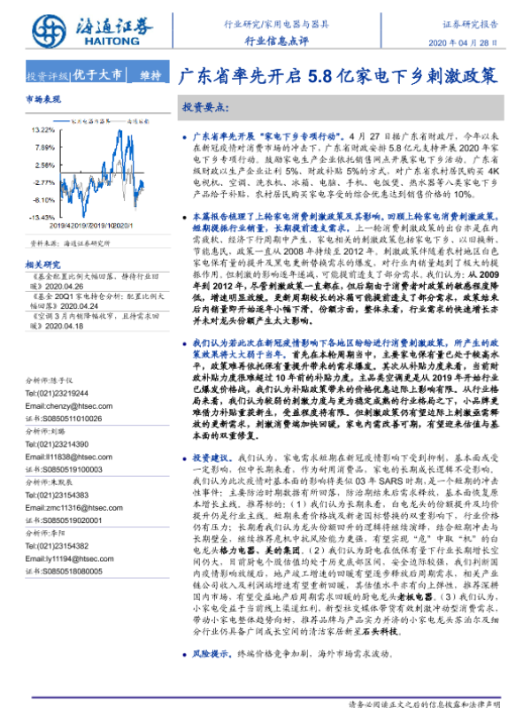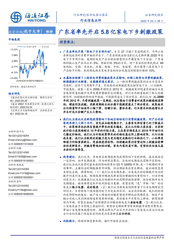【海通证券】【20200428】家用电器与器具:广东省率先开启5.8亿家电下乡刺激政策-9页