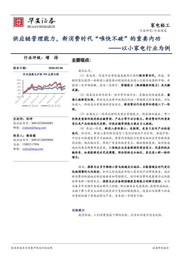 【华安证券】【20200506】以小家电行业为例:供应链管理能力,新消费时代“唯快不破”的重要内功-18页