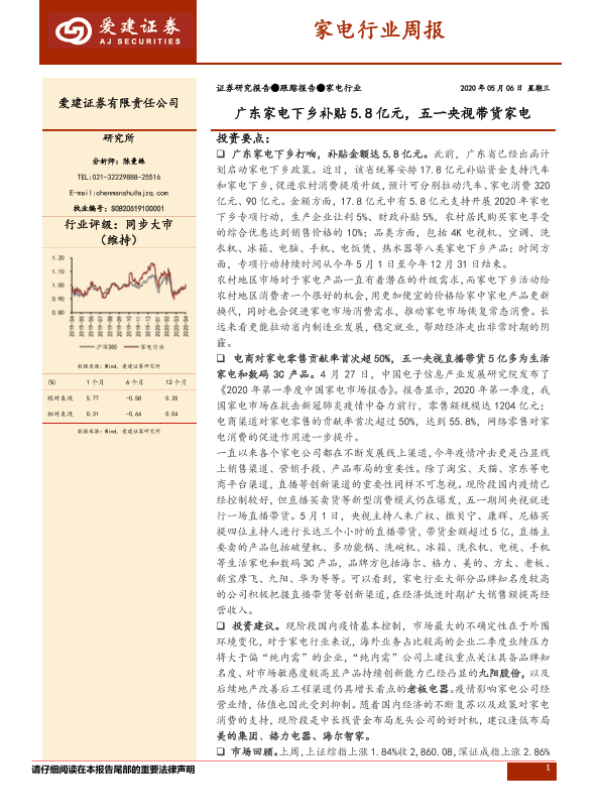 【爱建证券】【20200506】家电行业周报:广东家电下乡补贴5.8亿元,五一央视带货家电-11页