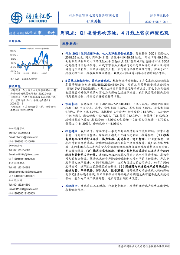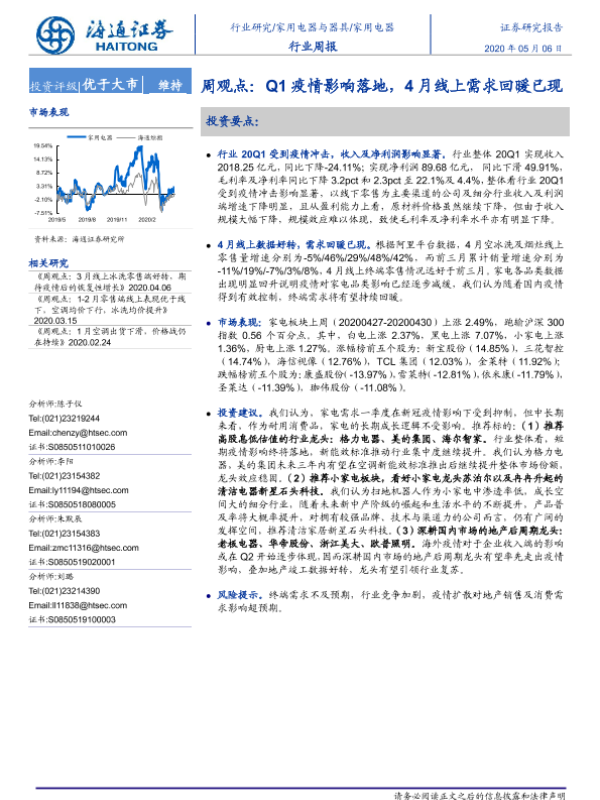 【海通证券】【20200506】20200506-海通证券-家用电器周观点:Q1疫情影响落地,4月线上需求回暖已现-2页