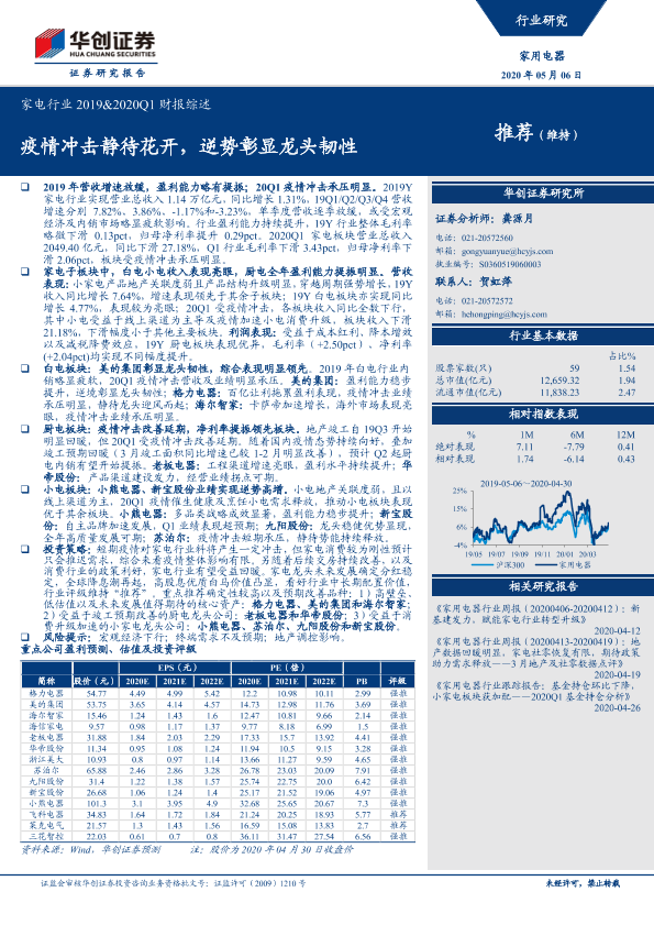 【华创证券】【20200506】家电行业2019&2020Q1财报综述:疫情冲击静待花开,逆势彰显龙头韧性-27页