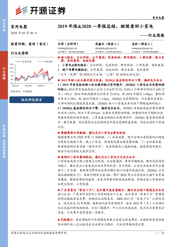 【开源证券】【20200506】20200506-开源证券-家用电器行业周报:2019年报&2020一季报总结,继续看好小家电-35页
