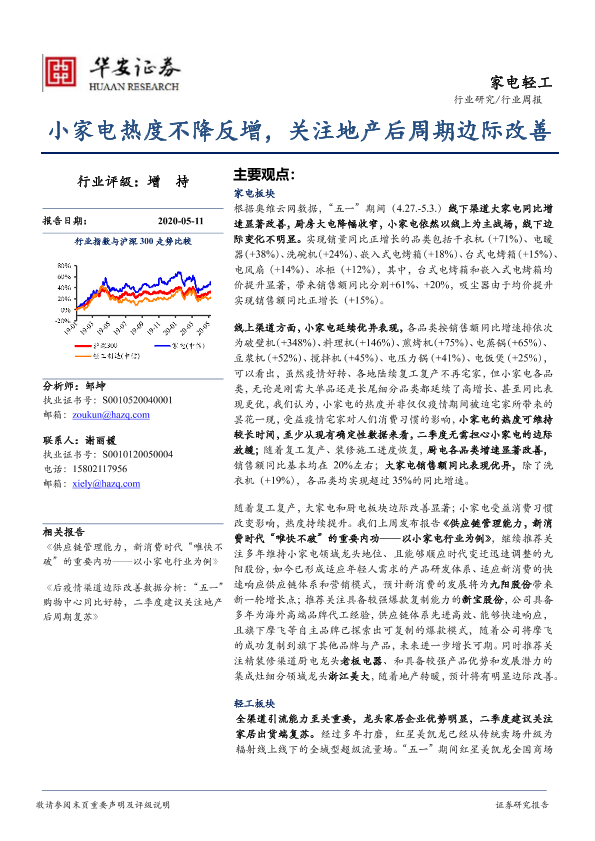 【华安证券】【20200511】20200511-华安证券-家电轻工行业周报:小家电热度不降反增,关注地产后周期边际改善-11页