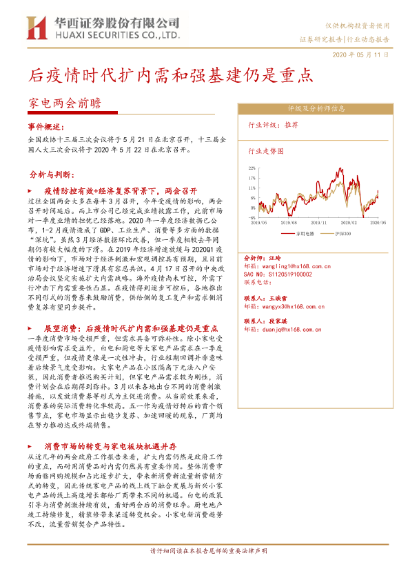 【华西证券】【20200511】20200511-华西证券-家电两会前瞻:后疫情时代扩内需和强基建仍是重点-15页
